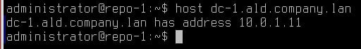 Проверить значение на уникальность можно с помощью утилиты host. По приведенному далее примеру можно заметить, что имя dc-1 уже используется хостом с IP-адресом 10.0.1.11, а имя repo-1 еще свободно: