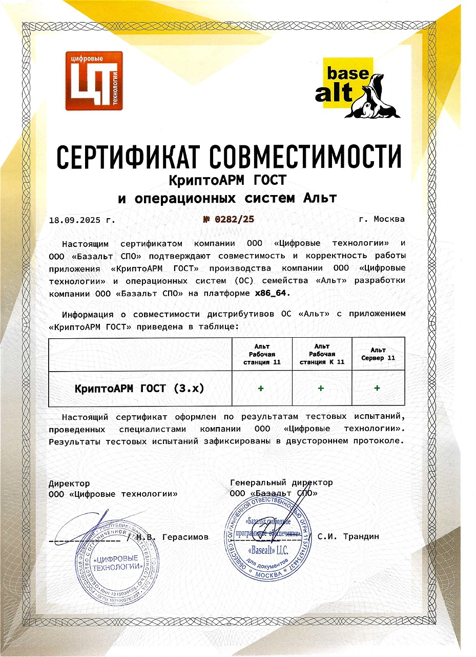 AlterOS 2025 и КриптоАРМ ГОСТ 3