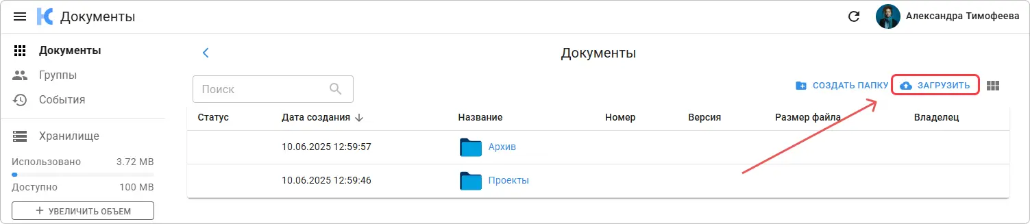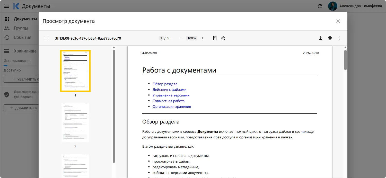 Работа с документами в сервисе Документы включает полный цикл: от загрузки файлов в хранилище до управления версиями, предоставления прав доступа и организации хранения в папках.