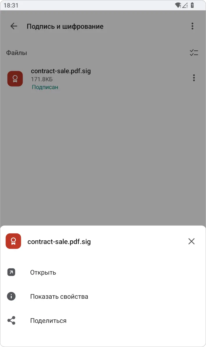 💡 В окне с результатами операции вы можете ознакомиться с информацией о подписи и поделиться файлами.