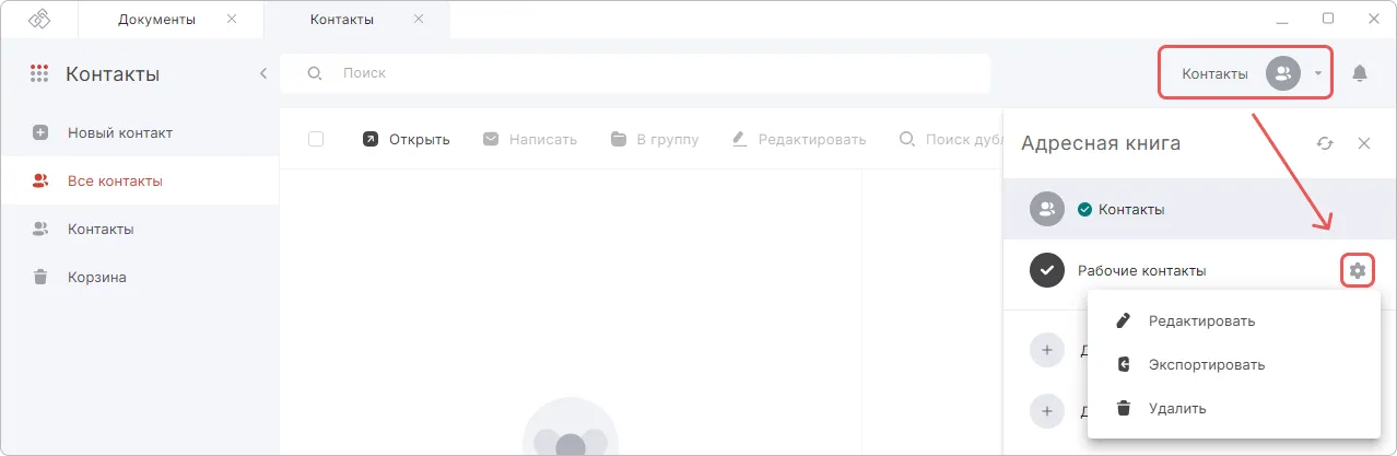 ⚠️ Примечание: Редактировать можно только название адресной книги. Содержимое контактов редактируется отдельно.