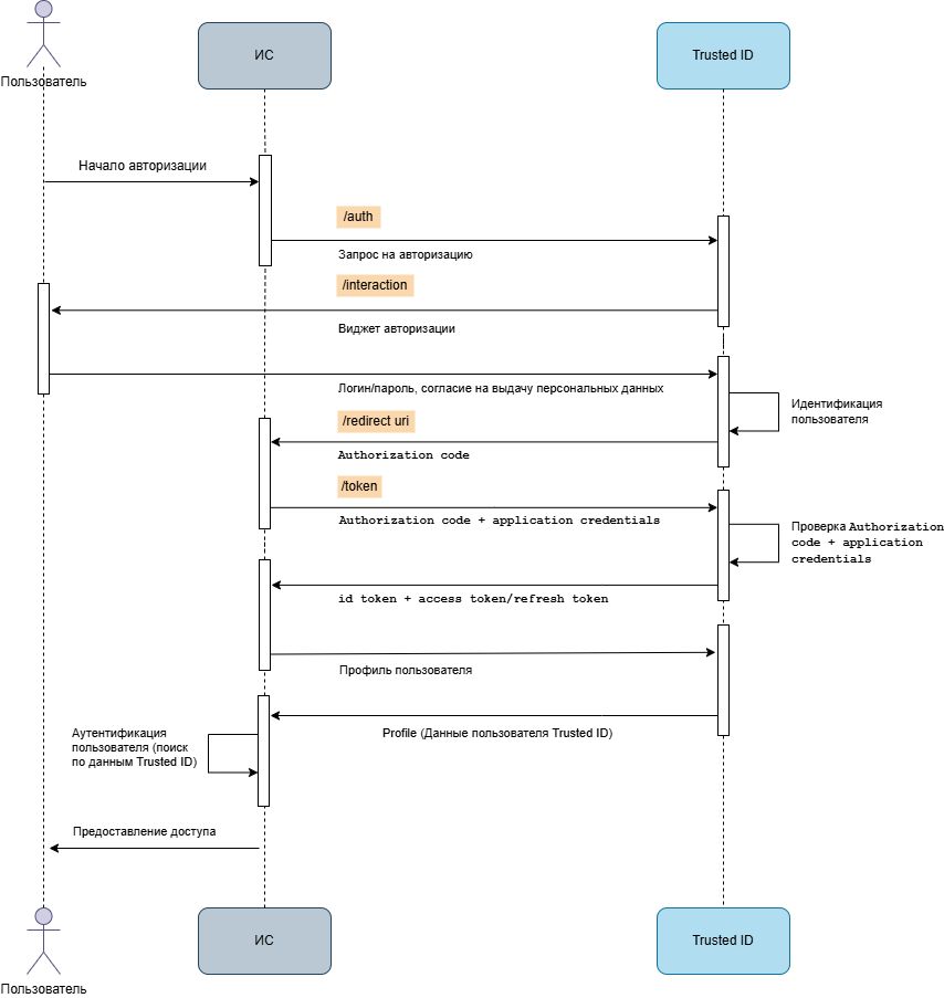 tokenпоAuthorization code. - Trusted.ID валидирует запрос.