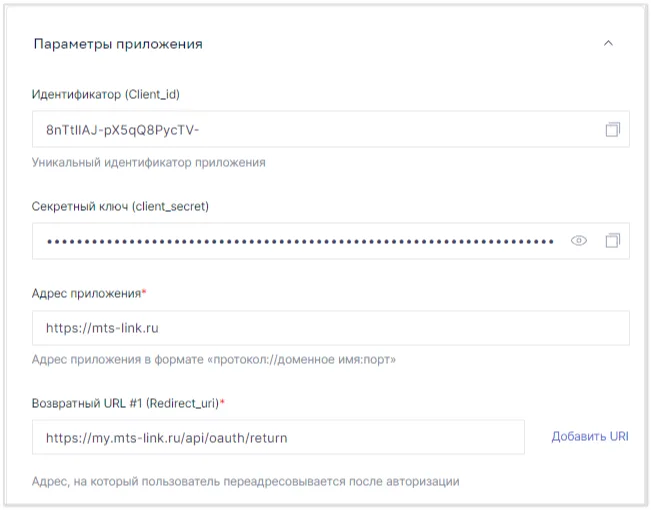 Если они отличаются — скопируйте актуальные значения из МТС Линк и вставьте их в настройки вашего приложения Trusted.ID.