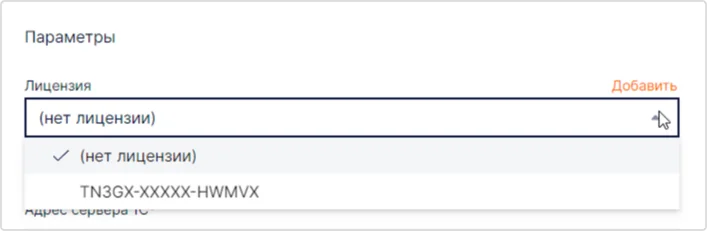 В настройке Лицензия выберите лицензию из выпадающего списка.