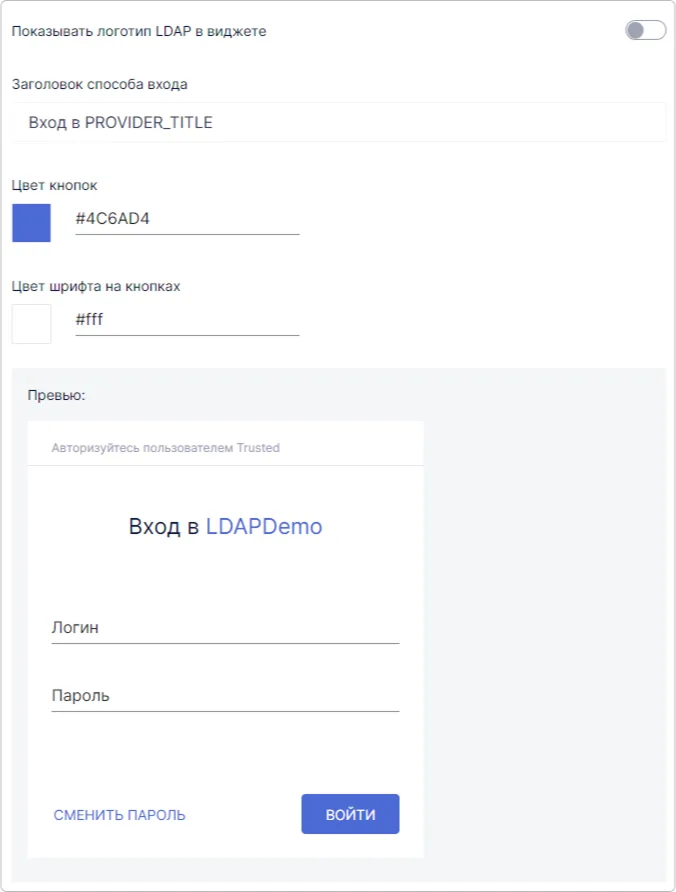⚠️ Примечание: Настройка параметров виджета входа доступна при редактировании провайдера.