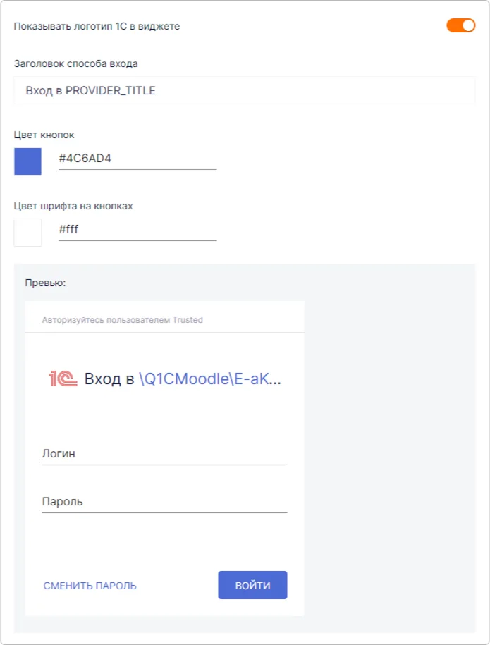 ⚠️ Примечание: Настройка параметров виджета входа доступна при редактировании провайдера.