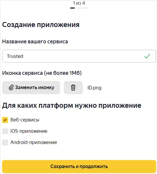 | Название | Название, которое будет отображаться в интерфейсе сервиса Trusted.ID | Текст | Макс. 50 символов |