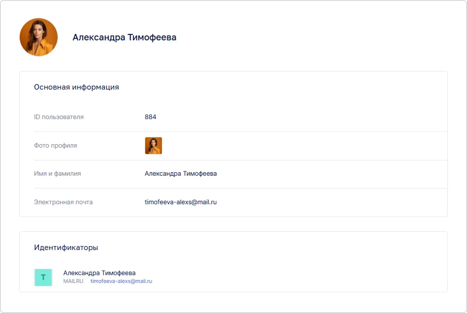 6. Откроется профиль пользователя, содержащий перечень данных, доступ к которым предоставил пользователь.