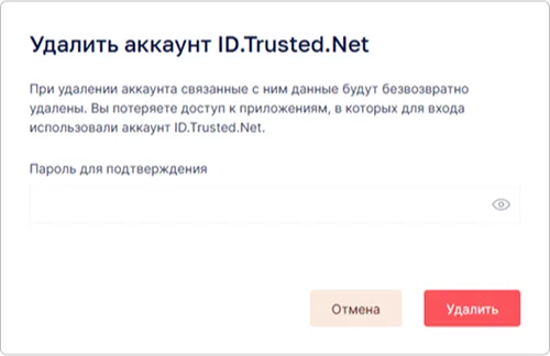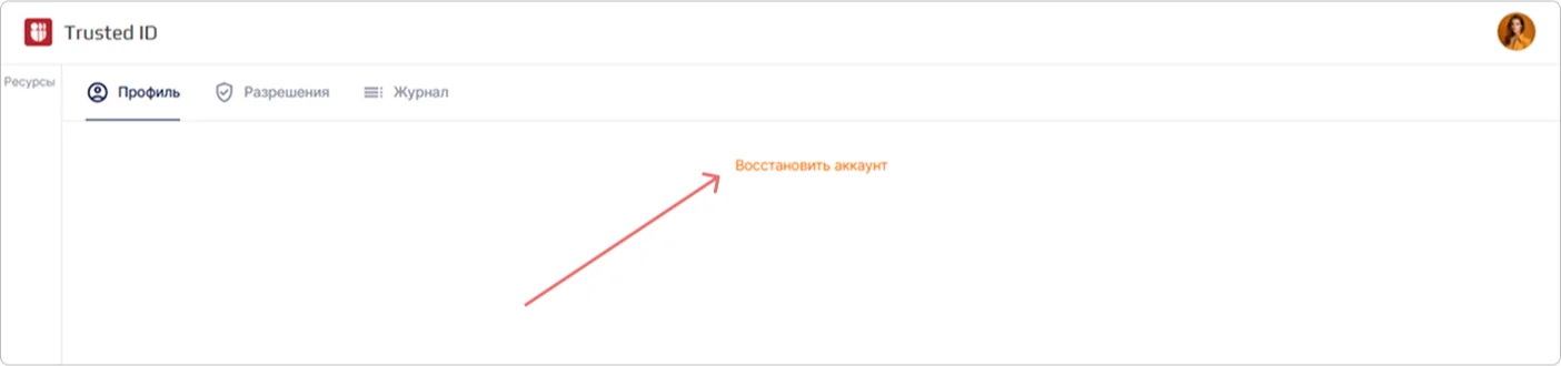 💡 Восстановление аккаунта доступно только при авторизации в Личном кабинете Trusted ID. При входе в приложение через сервис Trusted.ID восстановление аккаунта недоступно.