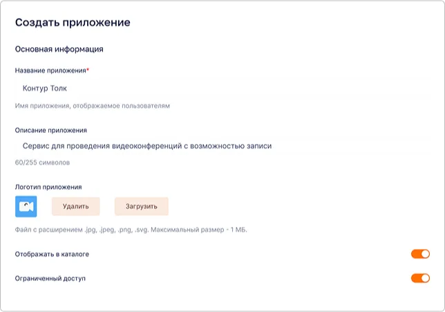 - Адрес приложения - адрес инсталляции системы Толк,