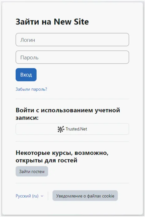 Кнопка входа через Trusted.ID отображается на форме авторизации СДО Moodle.
