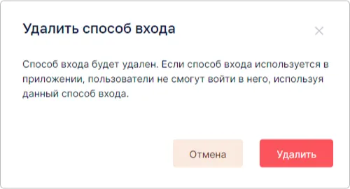После удаления провайдера в виджете входа пропадет возможность входить через данный провайдер.