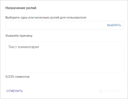 Форма Добавить роль закроется, выбранные роли отобразятся в поле с выбором ролей.