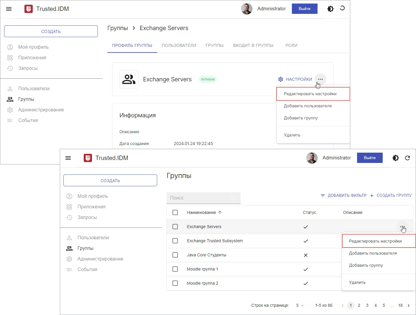 - Название группы - название будет отображаться в интерфейсе системы IDM,