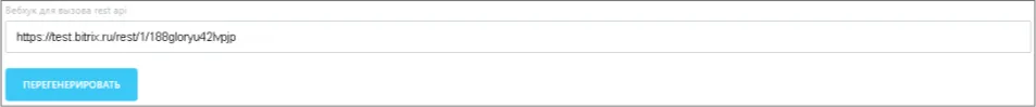 | Адрес сервиса | Да | Адрес системы 1С-Битрикс в формате https://{адрес Битрикс}/rest/{идентификатор пользователя, создавшего вебхук} |