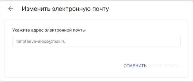 5. Укажите новый адрес электронной почты и нажмите Продолжить.