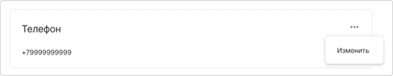 В своём профиле пользователь может добавить номер телефона, если он ещё не был указан, или изменить его. В зависимости от состояния поля в разделе «Телефон» отображается соответствующая кнопка: «Добавить», если поле пустое, и «Изменить», если телефон уже был добавлен.